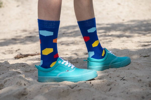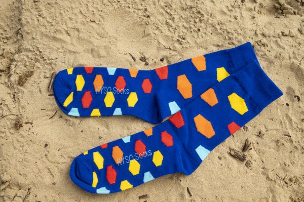 Opzoek naar neutrale sokken? Dan is deze kleurrijke zeshoekige sok echt wat voor jou!